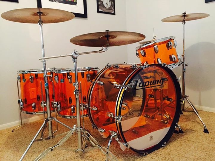 I know its not vintage, but I have a Ludwig Vistalite "Zep Set" for sale. This is the John Bonham amber reissue kit with sizes 26-18-16-14 & the 6.5x14 LM 402 Supraphonic snare. This kit was made in 2009 - Ludwig's 100th anniversary year and I have been the sole owner. Kit is in excellent condition; there are no scratches on these drums and they live in cases. I just put new Remo Controlled Sound (black dot) heads on bass and toms. Included in the sale are a Ludwig snare stand for the 14" tom, a vintage (late 70's) Ludwig Hercules snare stand (for the supraphonic), a Ludwig speed king pedal and drum cases. The bass drum case is a Sk8 hard shell case. These drums sound huge and project like crazy. It is a beautiful kit and really fun to play. I am selling because I have a few vintage wood kits and I just play those a lot more. The Bonzo kit is too awesome to sit in cases in a closet. It should be played and gigged!