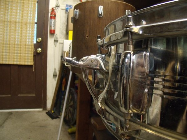 So this is snare #1 ( making a separate post for the other ) got these in a recent lot and haven't seen this particular throw before. The adjustable butt is common, seen that a bunch. Also threw me off that it's a ten lug. Absolutely sounds fantastic, decided to add this into my own collection. Anyone know the name of this particular throw? It's just on or off. No adjustment otherwise.