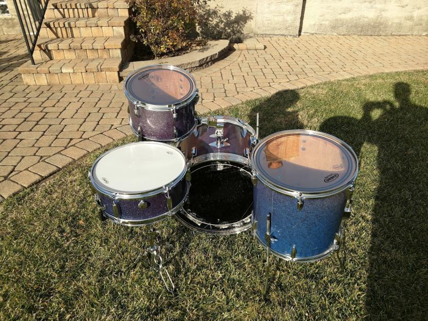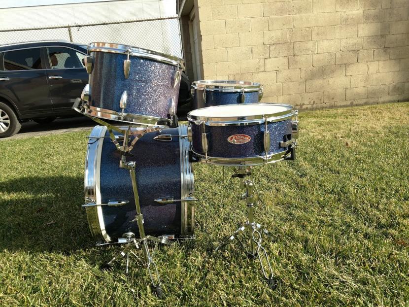 Blue Sparkle "Olympian" MIJ Kit (not to be confused with Premier "Olympic", which were made in England). Nice players kit. I'll let the photos do most of the talking, but here are some things to know about them: