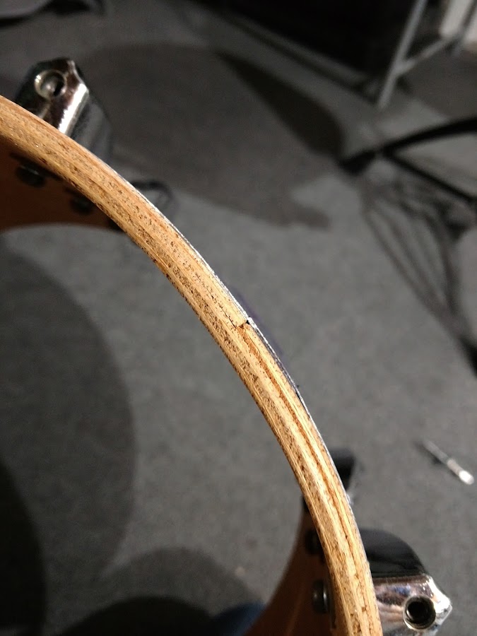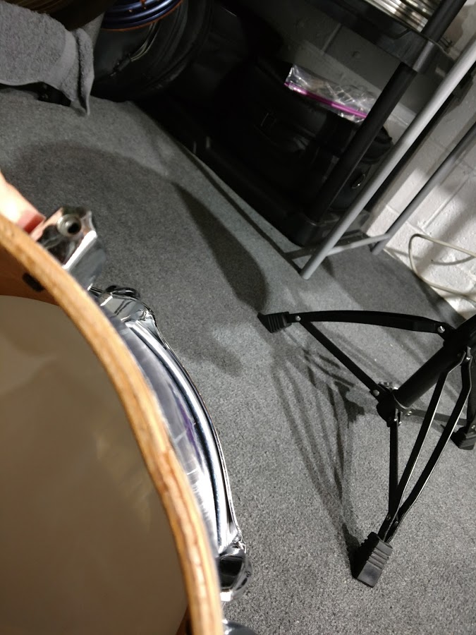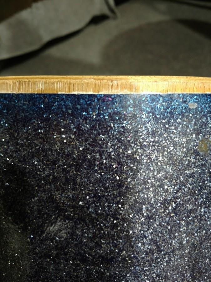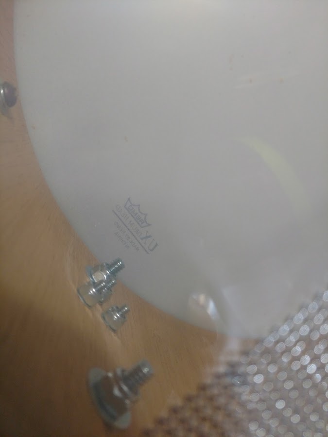 Rack Tom: 6 lug, natural interior with no re-rings. It has some...well I guess it's fading, but it is actually darkened to a midnight blue (See photo "Olympian 13" ) in the thread below. It's on about 40-50% of the tom, the rest of it is fine. This tom originally had a 5/8" mount that mounted like a bass drum spur with a nut on the inside. I filled in that hole with wood filler and colored it blue with a Sharpie, so it's not very noticeable (and faces towards the floor tom if the badge face the front/audience). Because of this mount, the tom has a bit of a flat spot in that area. The heads fit and tune up just fine, though. (See Olympian 11 & 12 below to view the flat spot from each bearing edge). To mount the tom, I will include a 3/4" Pearl style tom arm and the bracket that accepts it (it originally was one of those odd 3/4" vertical to 5/8" horizontal tom arms that was lost long before I obtained them-See "Olympian 6"). All you need is a suspension mount and you're good to go, or if you prefer you can also mount the tom on a snare stand like the photo shows (Please note, neither snare stand shown is included). Nearly new EC 2 batter head and bottom head is good. Of course if you choose to use a suspension mount, you can place the cover plate of the suspension mount to completely hide the old hole that was filled in.