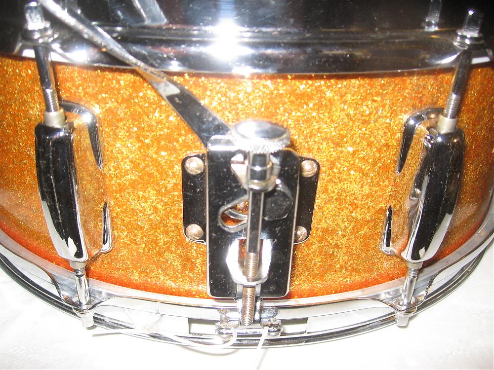The 4 point strainer, above, in the first set of pictures, was last seen cataloged in the 1966 catalog. It is a an exact copy of a late 50s-early 60s Rogers student type snare strainer. Likely was discontinued because the throw arm is rather thin and easily bent. That said, it has a certain mojo that I like, I have 2 examples of this strainer, both work perfectly, holding tension as if it's life depended on it, although they are scratched pretty badly by who knows what.