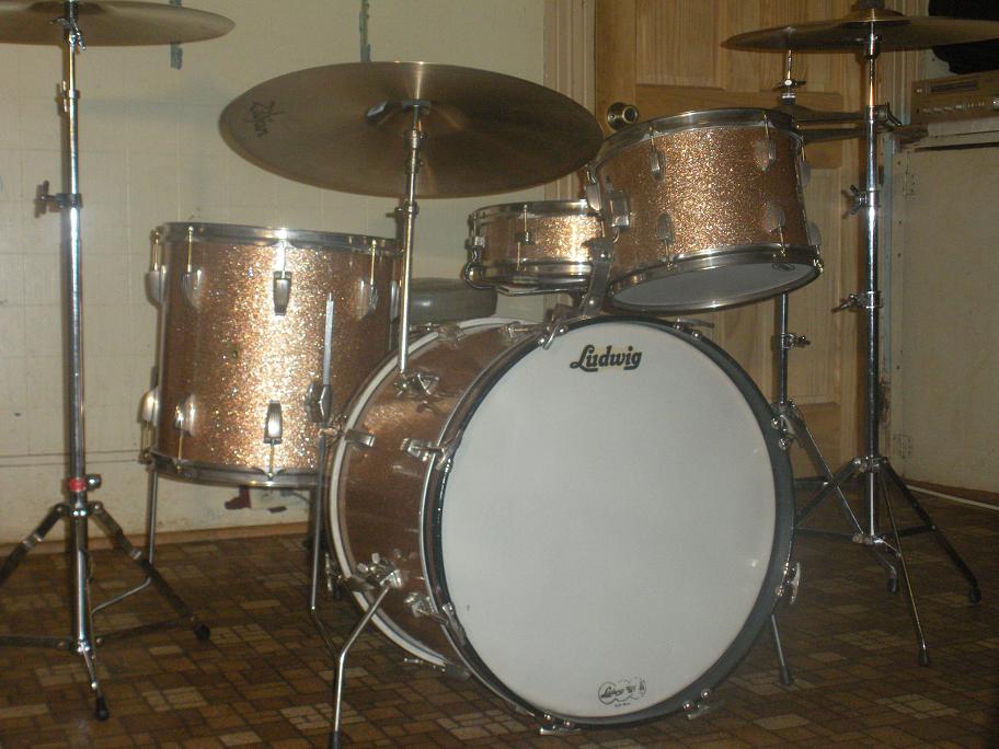 If I were you, I'd at least start putting together a complete 60's Ludwig hardware package -just to have it to go with the drums -for photos and stuff. Even if you prefer to use other stands and pedals, it would behoove you to have the right stuff for posterity's sake. Like I say, there aren't too many nice Downbeat kits with the matching Downbeat snare drum out there, anymore.