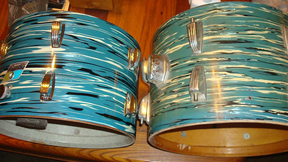 drum shack you have good eyes, i cant believe it you caught me. the last picture of the tom in my snare stand has the original rim. the one i just finished has one original rim on the bottom and the top is a new rim i found. they are identical you really cant see the differance. unless you are drumshack of course. both rims are identical, if you look at both pics you can see they are damn near the same. i cant see how you were able to tell the differance. there both almost the same. LoLoLoLo