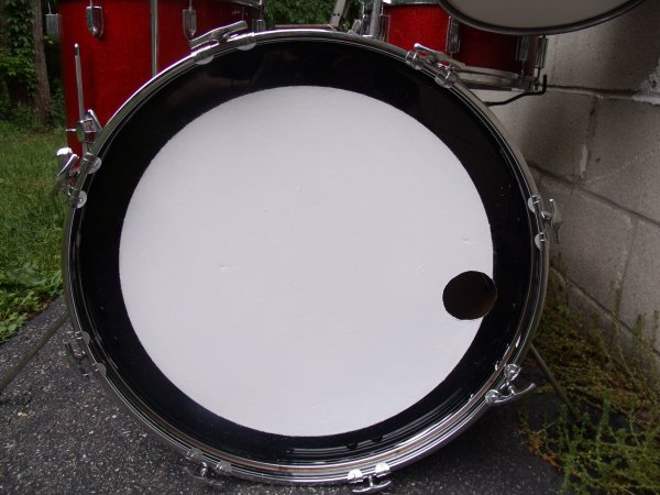 So I've decided that this summer I'm going to make a point to take some good photos of each of my kits & snares. Getting things started off with my Red Sparkle Tempro Pro kit. Got the bass and tom over ten years ago and a few weeks ago in the lot I picked up found a matching wood snare and 16" floor tom. The wrap on these drums is in great shape. Also picked up a steel shell over the winter. Don't have my cymbals at home, otherwise they would have made an appearance.