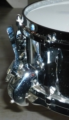 A Carlton (Dallas-London) metal 5"x14" with die-cast hoops and a beautiful throw of snares mechanism. It sounds great but it must have been aged maybe over 35 years.