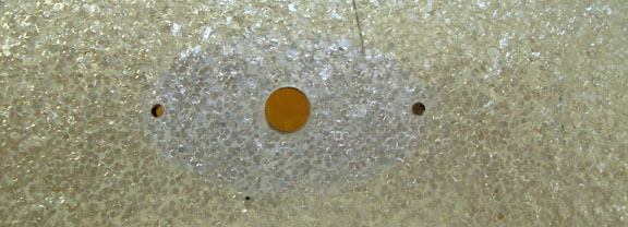 It's got fade marks where the two eyelets for the straps were. And in the attached pics the badge/vent hole is oval shaped and the two small screw holes are 2" apart. The lugs aren't rounded like Slingerland - I drew a red line in the last pic to show that. They look more like Ludwig. The lug holes are spaced 1 3/4" apart, measured on centers. The drum is drilled for 12 lugs per head.