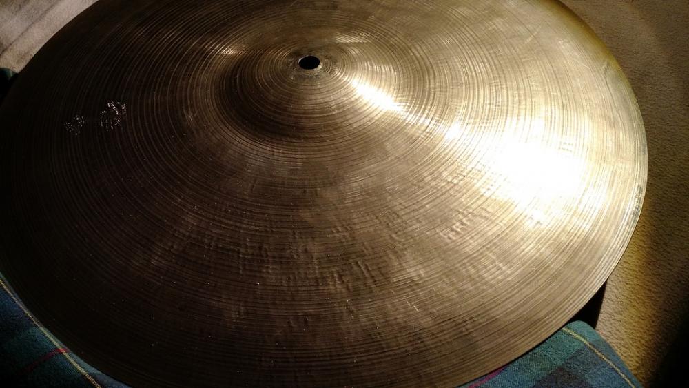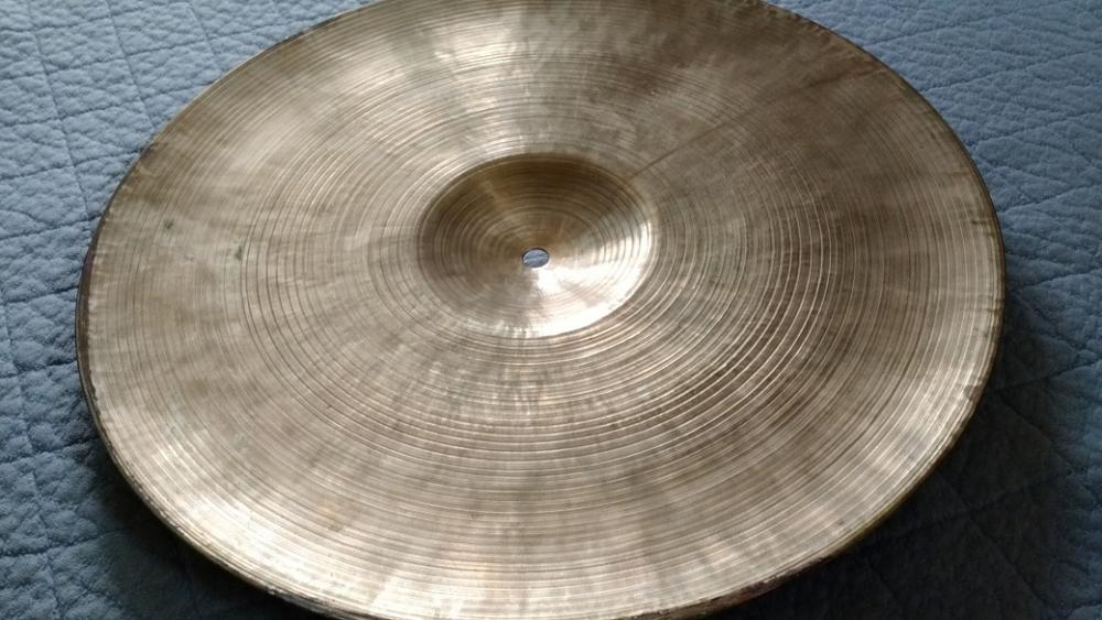 Zildjian Avedis 1950s SSA with outline logo (looking legit in close-up), huge bell, off-centre & old-sized hole, and extremely flat profile (around the bell even negative) - 2731g