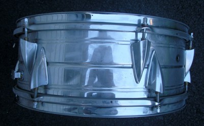 Can anyone ID this metal shell snare drum? It might be an import, but I've never seen this lug design before...