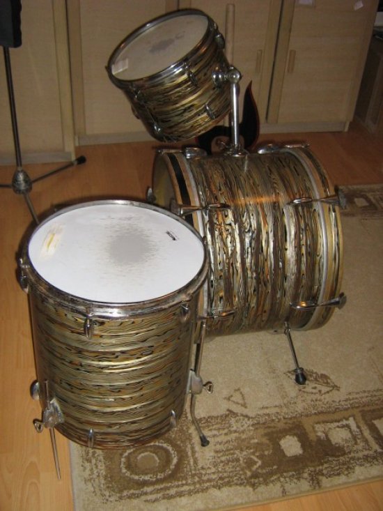 It is a '60's Japanese kit, likely made by Pearl or Star (Tama). the lugs are japanese Slingerland knockoffs. The hoops are japanese sticksaver knockoffs (and very good knockoffs at that). The shells are thin-ply Luan with rings.