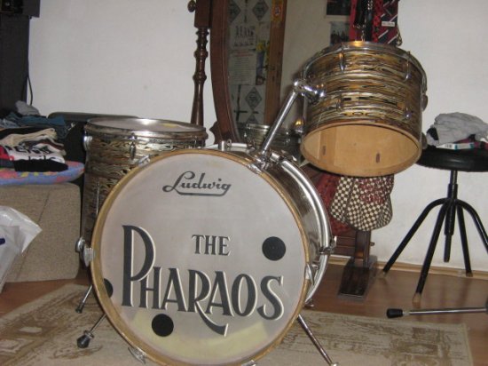 That was the drumkit for the Pharaos, the backing band for Steve Martin and the King Tut Tour.....j/k more like what the smart guys above wrote.