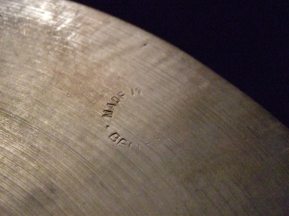 I believe it displays some hand hammering and does look like B20 bronze to me with lathing on it. I can make out the marks "made in" on the top of the circular stamp with what apperas to be the makers mark on the bottom of the stamp which looks like: BEll with more letters (approximately 5-6 total) that I can't make out??? I have some pictures available but no place to store them at the moment.