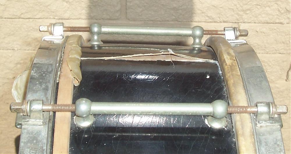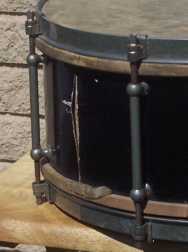 When I purchased the drum I was aware of the fact that the snare side head was basically destroyed. The drum was described as follows: "It's black enamel, is in good condition and only needs new skins to make this drum perfect."
