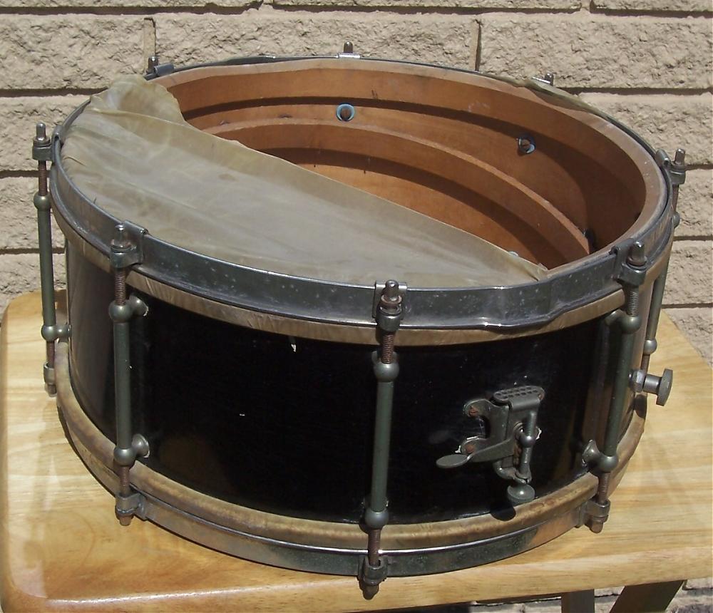 Well........CryBaby When the drum arrived I quickly discovered that it needed much more than "new skins" to make it perfect! The shell had an area that was lifted, the wooden reinforcement ring from the batter side of the drum was totally detached from the shell, there were no snare wires, and it's questionable whether the strainer functions properly.