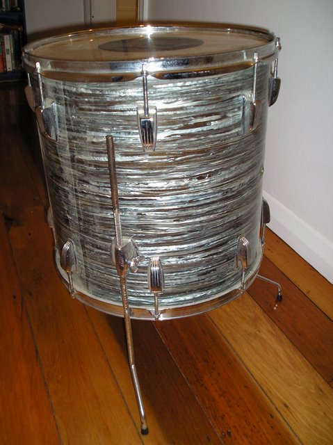 From searching this site and the catalogs on the VDG it seems that this kit with a 20" BD and 16" FT (the mounted tom turned out to be wrong) is neither a super classic or a downbeat. Because there are no badges or date stamps it's hard to tell if they even came together originally but they do appear to be of the same vintage (early 60's) and because so few of these were sold in NZ it seems possible that they were sold together.