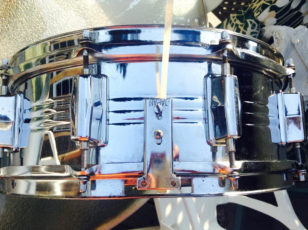 I just got home from drum teching at the Montreal International Jazz Festival/ Francofolies de Montreal with a 50 pound bag of lightly used drum heads and the snare I have been looking for for a while, a COB Pearl 4214. I started high school in '79 and am a big Stewart Copeland fan. A few months ago I grabbed a Pearl B-714D, which is also a 3-line COB without the parallel strainer, but 6.5 deep. I really like that one but still wanted a 4214 (5 deep) & finally managed to snag this one, which needs a serious cleaning, butt and strainer plates and a tone control.