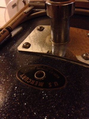 Just got a set of these mercury drums from the 60's. Nice blue sparkle finish, with cymbal mount on the kick drum. 8 lug snare. All drums are thin shells with reinforcement rings. Found these in near mint condition as they were being used as a display.