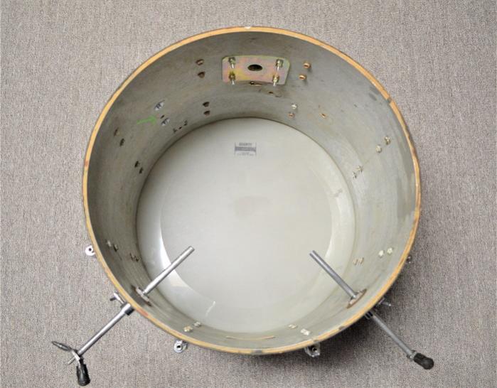 Extra screw holes in bass drum and tom from the Yamaha tom mount. One missing internal muffler from the 12. No Pratt Muffler. Unoriginal floor tom legs. All badges intact. No holes in 14.