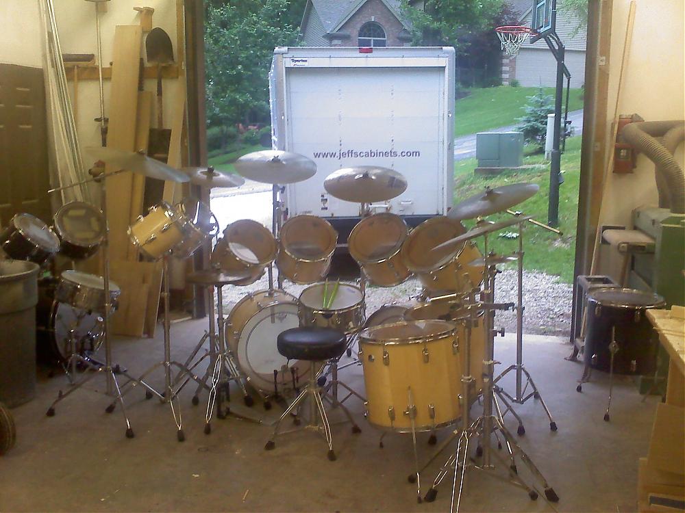 Beautiful work-As you are a cabinet maker,I'd like to pose a question.I would like to do a similar project with a set of Tama Rockstars from 1989.The veneer I'm applying is maple,and I'd like the stain color to be dark blue.Gretsch used to call it Blue Spruce,and now it's name is Carribean Blue.I can never get the stain dark enough-it always comes out an ugly baby blue.Any recomondations regarding a possible better veneer choice or stain/laquer/urethane....I'd rather leave the drums flat black than go thru all the trouble and have the drums baby blue.I think your drums are a better promo for your new side business than the sale price-$400 would be a lucky day sale,cause they are still 6-lug luan Taiwan jobs-sorry.Please don't stop-you are inspiring us!