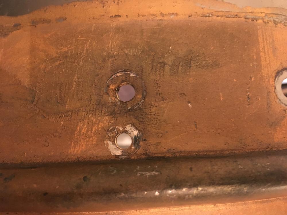 Dang ! Of all the places to drill for a muffler. Still a nice drum that should clean up good and sound great.