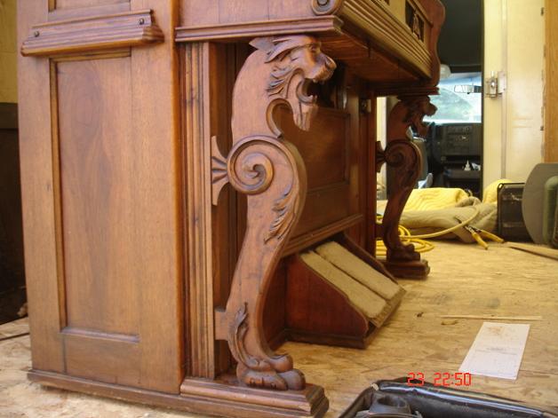 Jeff - If it's still available, it'll cost you over $1000 to ship it from Ill. to B.C. But I say it's worth every penny of it and more. 140 years old... that's -all- handwork. The lions in the legs and the all the filigree carved by hand. I'm sure the little rounded profile gallery shelves on either side of the music stand were intended to accommodate the round bases of candles, or lamps, so that the player could see/read the music. It's a special piece, I really hope you score.Break a leg.John
