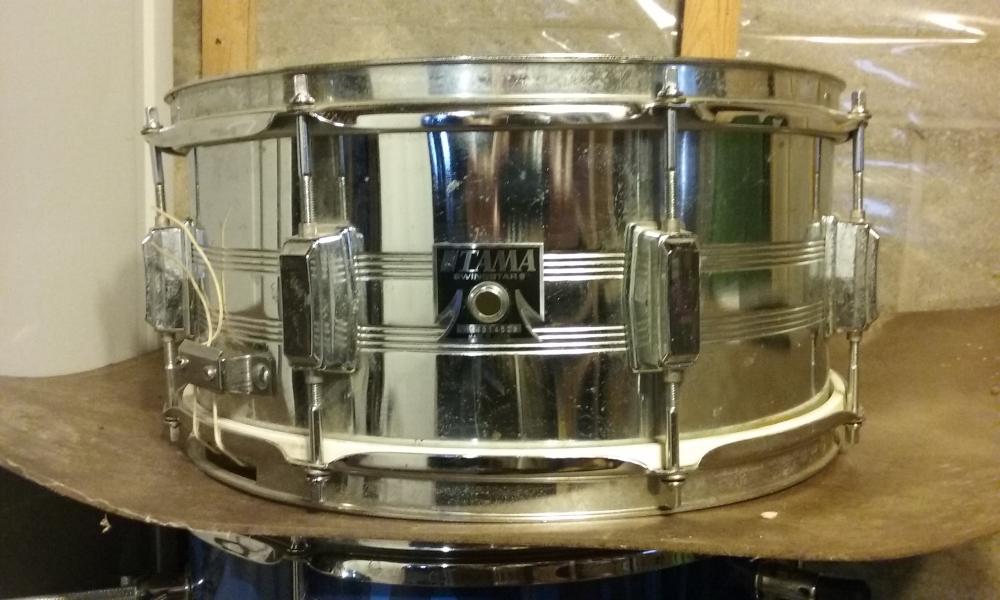 Needs cleaning, but I understand it is a fabulous snare. Seamless shell. Is my dating right at '84-'86? I have always preferred triple-flanged to Die-cast, so this should be pretty great. Remo Diplomat....not much experience with those. Looks like original heads?? Could they be from 31 years ago?