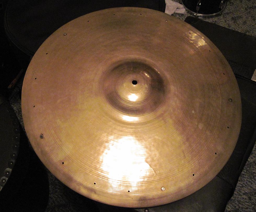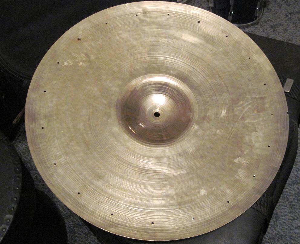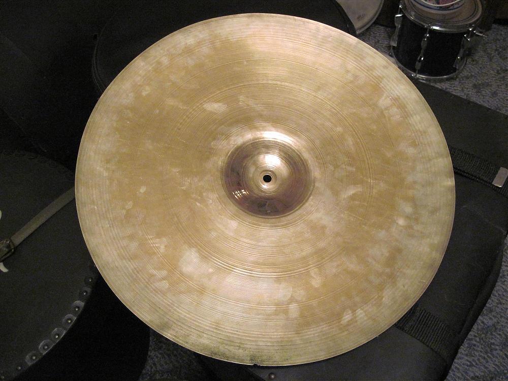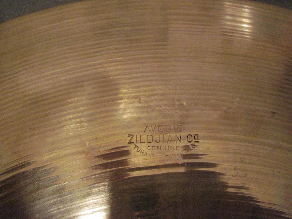 That's an early 1950's trans stamp.And I figure that's its likely that this is what that 20" is as well. Why it didn't get the trademark stamped into, I don't know. Weird things like that have been documented as happening before. Double stampings with 2 of the same trademark, triple stampings, quadruple stampings, double stampings with different trademarks (but adjacent ones on the timeline), upside down ones, and even omited ones like this.Maybe somebody was just having a bad day at the foundry when this occured. I've yet to see any sideways stampings with Avedis yet, but I have seen one with an old K. Zildjian. And I have photographic documentation for all of these cases in my archives. In fact I could probably do an entire dissertation just on this subject alone.I might call it "weird days at the foundry".