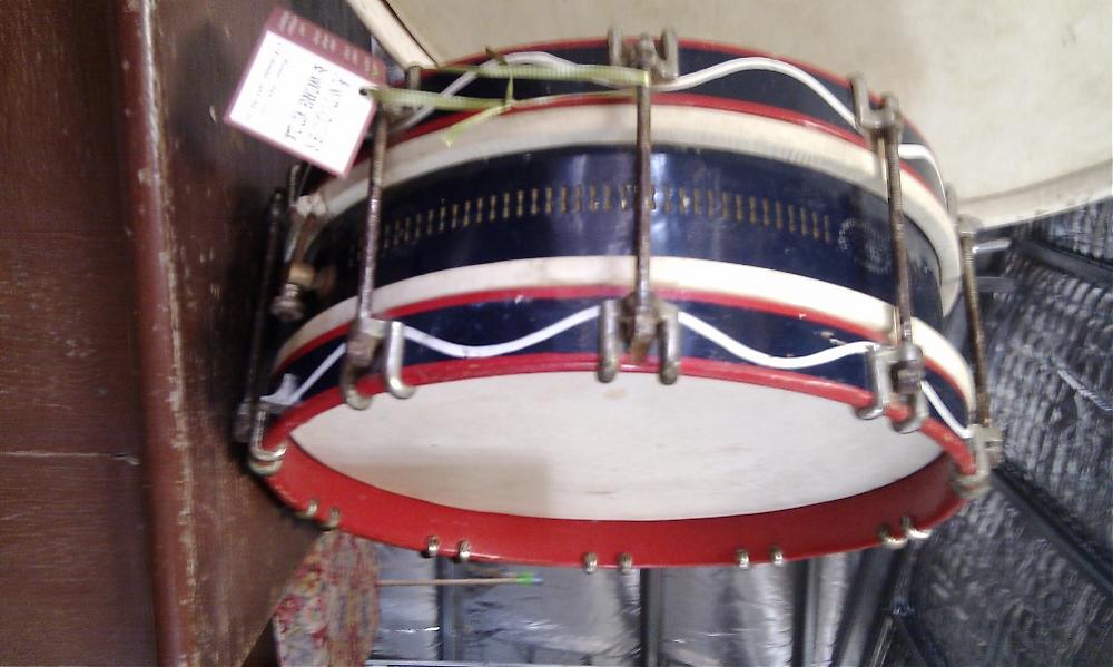 just found this in the local antique shop, paid a deposit on it, its described as english, brand is stamped on steel shell as ' ideal ' what have i got here, vintage, veteran? 14'' hide heads, botton head wrecked, snare damaged, strainer in place. not my area of interest, but i think its a great curiosity and will purchace as a display piece, any clues? mobile phone pic resized an upside down, so sorry about clarity of pic.