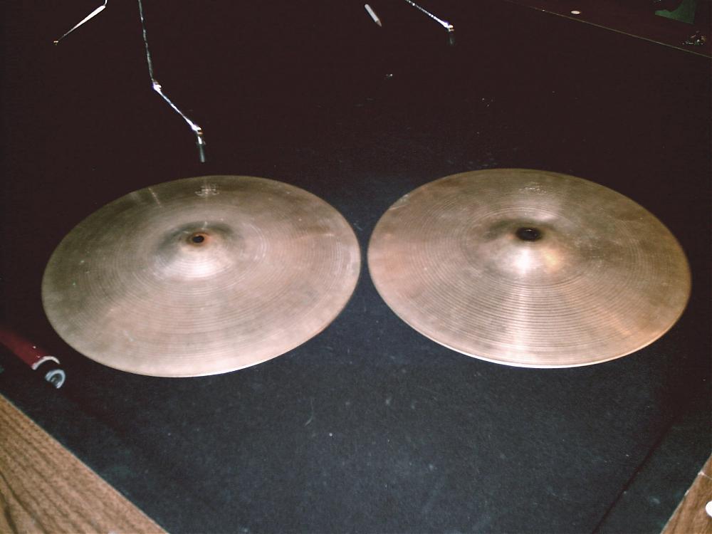 I am looking to sell these cymbals but don't know what they are worth. Could someone please tell me what era they are from and what a good asking price may be? I bought them used about 12 years ago and they seemed old then. One weighs 1160 grams and the other weighs 1360 grams. The stamp measure 1-1/2" from top to bottom. Below are some pictures to help evaluate the hats.