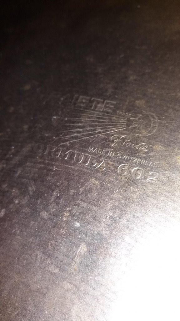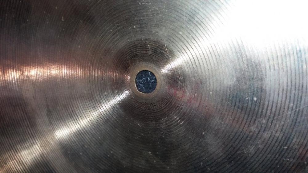 The serial number would be below the mounting hole is presuming you hold the cymbal with the trademark stamp at the top. If you find out there is one also check if there is anything stamped above the serial number (could say PAISTE or PAISTE 602 for example). But I certainly don't see a serial number in the photo.