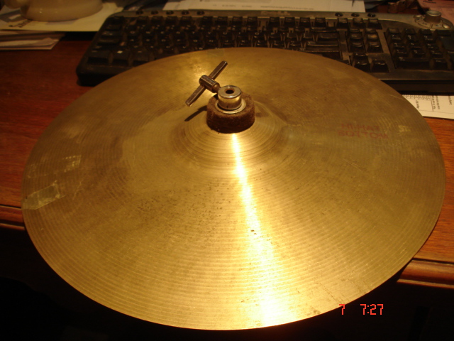 By the way, I know its a bottom because it has a stamp (in red ink) on it. I used it as a top, and a Paiste 302 ( German made serial # 275536) as the bottom hat. It sounded good, kinda.