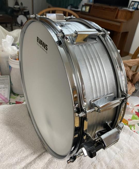 That CB700 snare (I thought may have been aluminum but a magnet sticks) is the first I’ve seen also. I took it apart completely, cleaned up and put new heads, tension rod washers and wires.
