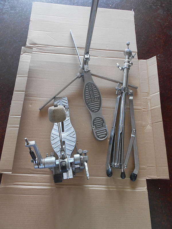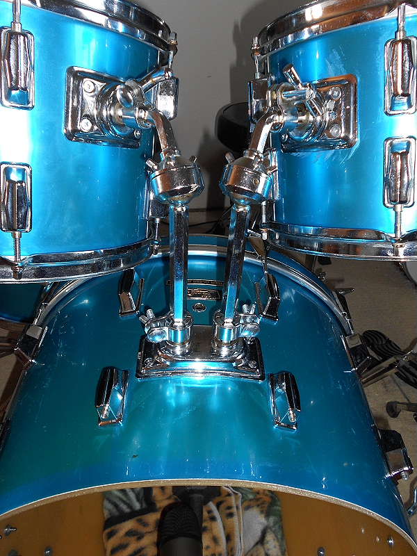 Bill, they look like the gorgeous set you have on ebay. These have the hex style tom holder rods, though. 12, 13, 16, 22. The bearing edges are good. The wrap is scratched up in areas, but not peeling. There is also some fading/discoloration and what looks like some paint overspray that I couldn't polish off. I have the front hoop for the bass. The COB snare did not come with. I picked that up somewhere else. The kit came with a cheap, made-in-China Tama 14x5 COS. I am only missing one spur, one claw and a couple proper tom holder tensioners. The bass pedal is era correct but has a busted frame. More hardware is one era cymbal stand that is good and one non era correct Pearl Speed Pedal hi hat stand. I'm guessing that the hat stand is early 60's, but I'd like to know from you expert types.