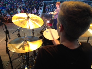 It was also interesting to see how technique effects gear. For these kinds of events my standard heads are Evans G2 coated over G1 clear resonant heads on toms and Remo coated CS heads on snares. Some guys could play those for days with no issues and some guys can barely make it through a 35 minute set without a head change. It has everything to do with technique. If you play "out of the drum" you are much easier on the gear and the tone is significantly improved. If you play "into the drum" the tone is choked and the gear gets beat up in a hurry. It has very little to do with how hard you hit. The hardest hitters i had Saturday had no issues as a matter of fact. I can generally look at the way a guy is holding his sticks and know if I'll need a head change. :-)