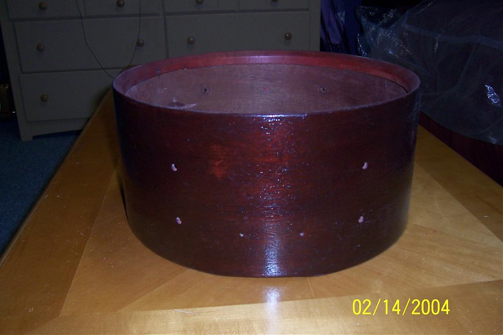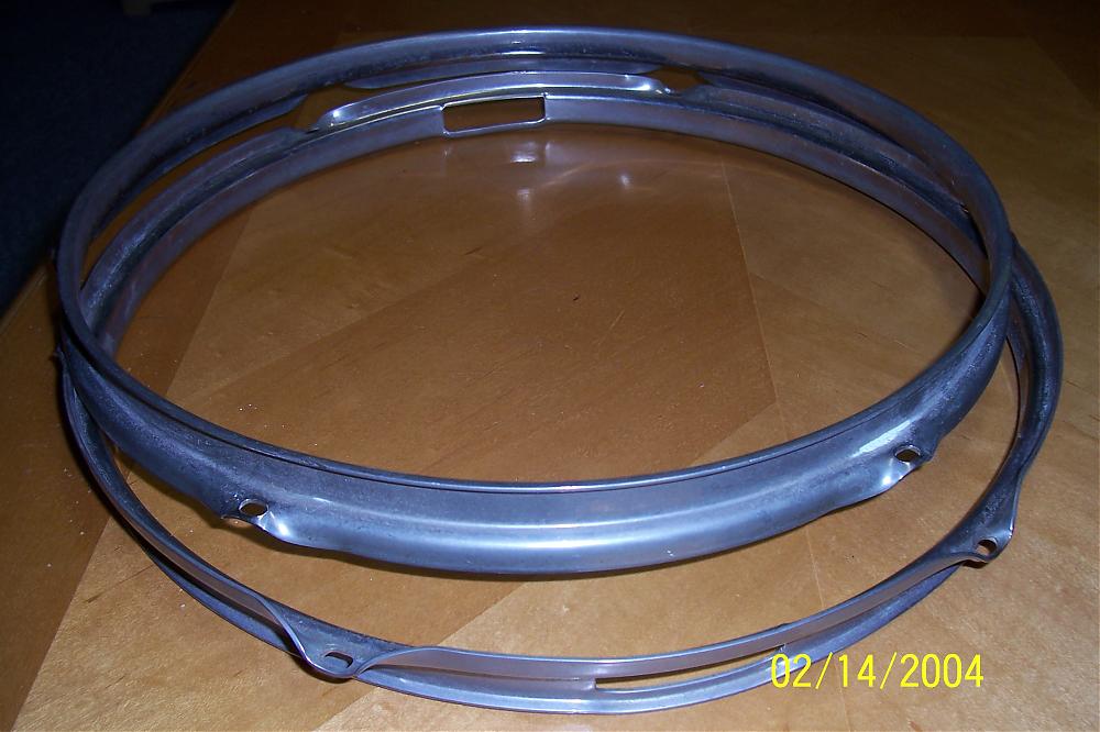 ps. this is the way I reecieved this drum, and the finish is some ones attempt of a redo. As you can see, I need the lower sliding part of the throw... Cant figure out how or who would do all that damage. I would like to restore this drum to original 59 condition if at all possible. I forgot to include the rims in the pics and do have both in good condition. Like I said in my first post, these are six lug rims. However I would need that piece on the throw, and a set of period snares. Also, what would be my options on the shells outer finish? Is there a catalog showing color choice or wrap finishes? The good news is that the inside of the shell was spared, with no damage at all. I would also like to know what skins were put on when new, and can they be found today? If any body needs certain info, or more/better pics, please let me know.