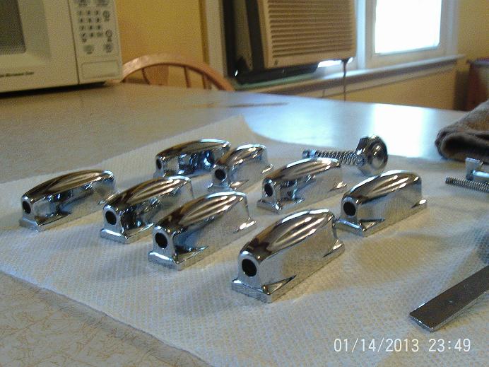 man, you did a great job on that. that's what its all about,bringing these old things back to life. well, mine is a 6 lugger and yours is an 8, so there's the answer to the question. ive got another pearl snare with this same badge. it too is a 6 lugger. it has no re-rings though. I see yours has the re-rings like mine does. again....nice job.