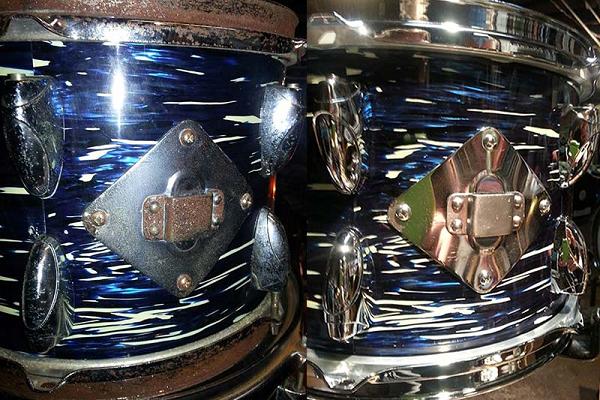 After years of searching and waiting, the missing rack tom for my US Mercury Gold Agate kit finally surfaced...but the chrome looks like crap. Looks to have a good amount of rust on the rims and pitting on the lugs.
