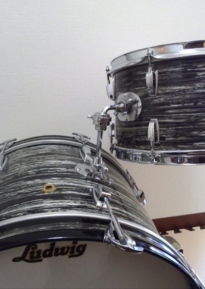 I was happily unaware until last night at his band's concert ( Beatles tribute ) that my friend here in Japan - Morita san ( for whom some years ago I procured a mint '66 Ludwig Oyster Black Pearl kit ) - removed the original Ludwig tom holder and tom mount and replaced them with Rogers Swivomatic a la Ringo . I couldn't believe he did it !!! So now , 3 out of the 4 original factory holes remain unplugged ( one covered by part of Swivo ) . I was wondering if someone in US makes or could make 3 dowels for Morita with Oyblack caps . Of course he's prepared to pay for the parts/service . Any recommendations / suggestions would be greatly appreciated .