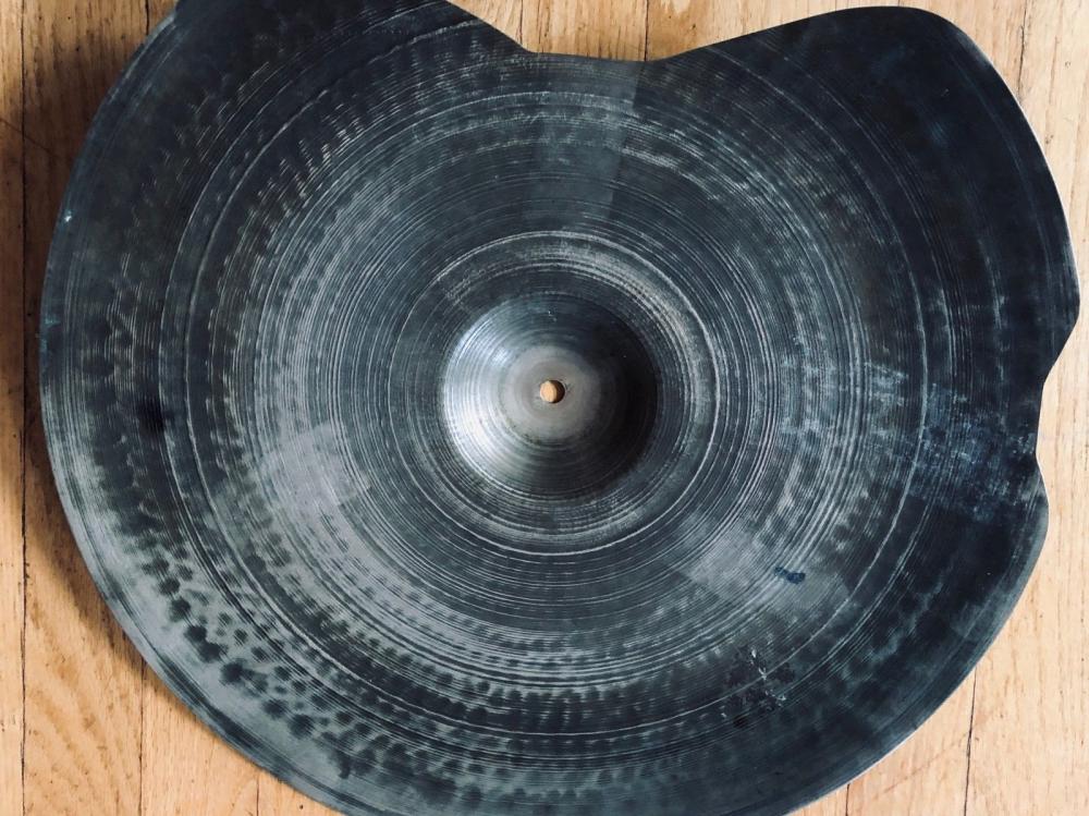 Just picked this up from feebay. 18" second stamp. Looks like hell, but sounds incredible. Lots of wobble, mellow, dark, quick decay, dry. 1257 grams as is. Using CAD, I figured it was about 1358 grams before repair.