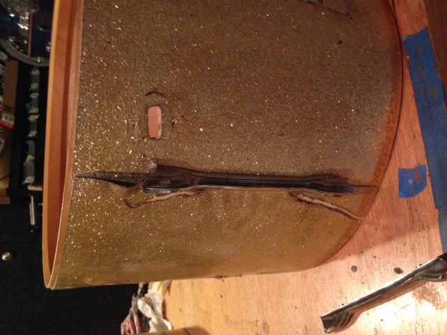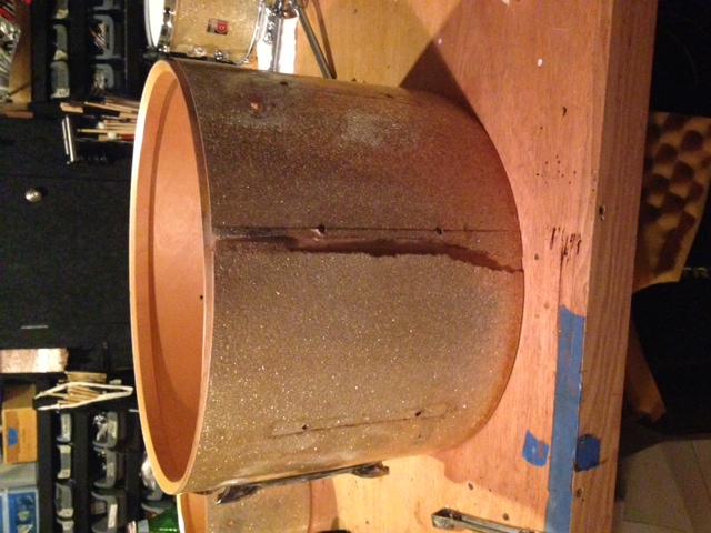 Another issue is that the wrap on the kick is only being held on by the lugs, so when I do reattach the wrap, do I use tape (as originally done) or go for glue.