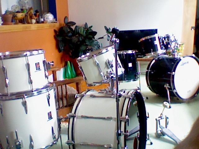 Like most here the bug has hit me hard. This time there were a few kits i've been looking at 1 province over and the other day the prices on both dropped beyond me wanting to leave them there so I made a mad dash road trip to Fredericton New Brunswick.I've been so busy that I forgot to upload some pics...so what I have here I believe is a 1978 or 1979 Resonator. At 22",13",14" and 16" these sound huge! I just finished fixing the tom mount with parts from a box a friend/bandleader gave me a few weeks ago after a gig. Damned if I didn't have every single part I needed in that box! I love when that happens! They just need a good detailing now, paint the rims, find a few missing slotted t-rods and 1 L-rod for the kick. The other kit is 2000s Stage Custom with those weird quick removal lugs. The finish is a bit scratched up but I got it really cheap to flip it and finance this drum run.