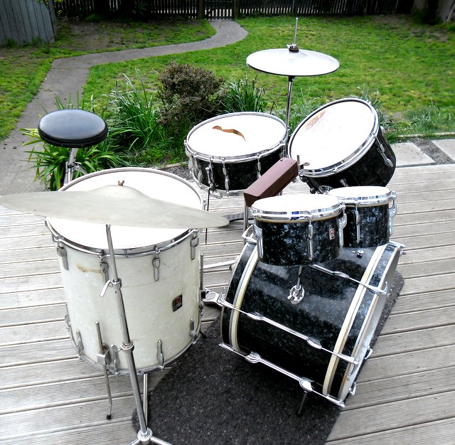 I spent the day on the road earlier this week collecting this early 60s Premier kit. It was owned by the drummer of a band called the Hi Lites who played the local dance halls in the 60s. I bought it off the sax player, the only surviving member, who was able to show me photos of the band in action all those years ago. And sure enough, the odd floor tom was there right from the beginning. My guess is the kit was the '52' outfit that had no FT and a FT was added. Being on the other side of the world the choice was probably between waiting half a lifetime for a BDP FT from England or going with whatever was available.