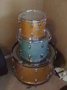 It's confusing because Ludwig didn't suddenly start with the Granitone and then go to the 6 ply. I have seen Granitones that appear earlier than clear interior maple three ply shelled drums, and definitely have seen pointy badge 6 ply shells.. the 70s is one of the least-consistent decades for Ludwig, period. But those drums look consistent. That appears to be a champagne sparkle color. Too bad the floor tom doesn't match.. However if the seller sits on them long enough maybe they will realize the price is out of range with reality. Some people who don't know the market very well price stuff high to begin with so they don't get ripped off out of ignorance. BTW I think that range, '72-'76 is a bit wide for Granitones, but as I said there is some overlap, the whole seventies era is like a giant transitional period. And you can't use the catalogs to determine dates, because there was airbrushing new badges, and old badges still on pictures left in catalogs, and sections of the catalog that are simply reprinted from previous catalogs, and of course the catalogs are printed well in advance of the year they're made for, and the factory changes come about way before the catalog is released, so there are variations. I'm sure everyone would rest easier to have an "expert" state stuff started and ended exactly on a certain day and I'm probably going to get flack for this but, in the end, you just have to deal with it on an individual basis, and live with the fact that some things may never be known.
