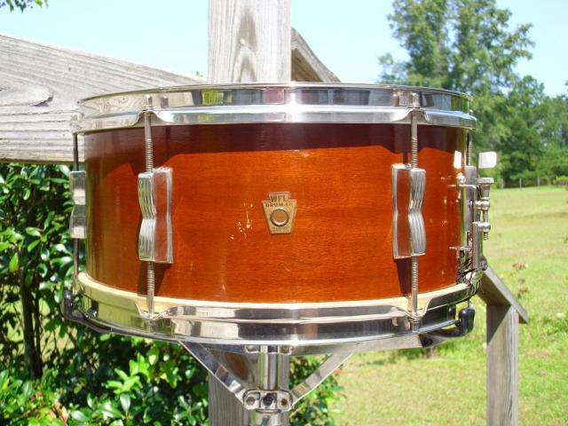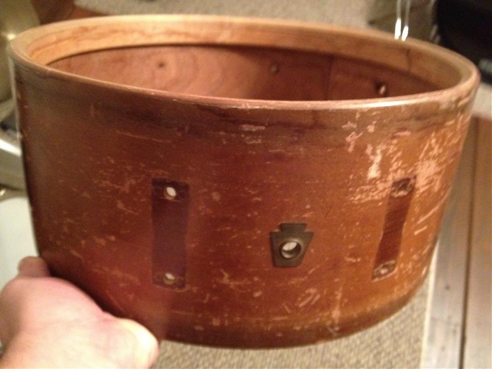 I recently made a barter for a WFL snare. I thought it was a '59 so I assumed it would match my '65 Luds fairly well. Upon looking closer at the time line of WFL products, it appears as though I may have a late '40's early '50's snare. I'll try to post a picture of the badge for all of you super intelligent drum fellas out there. It appears to be all mohagany with some tall re-rings (also mohagany). From a rough estimate it's around 6.5 - 7" deep. The one rim I have (throw, lugs, and top hoop coming soon) were "quoted" as being brass. Help me out peoples. Let me know if I got a good deal or it's not worth messing with. Lol.