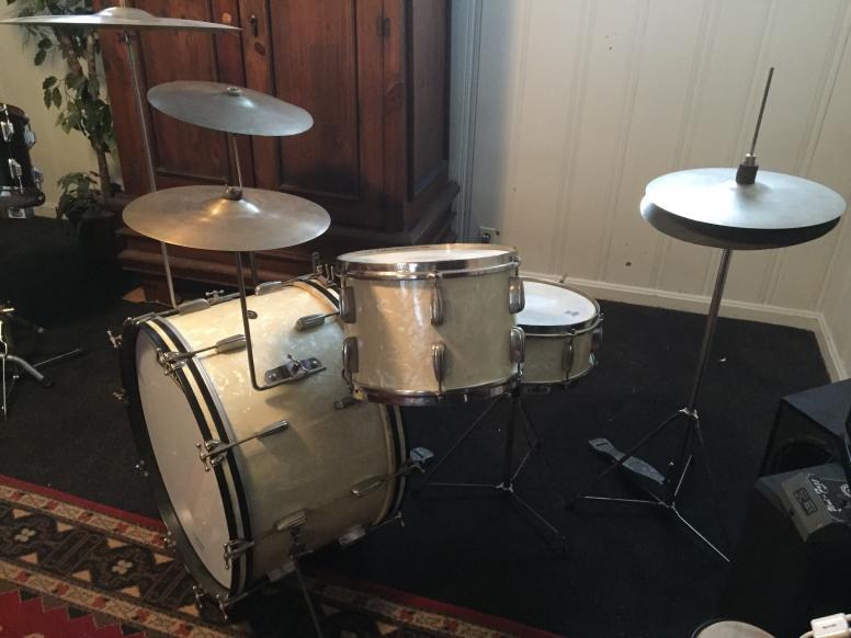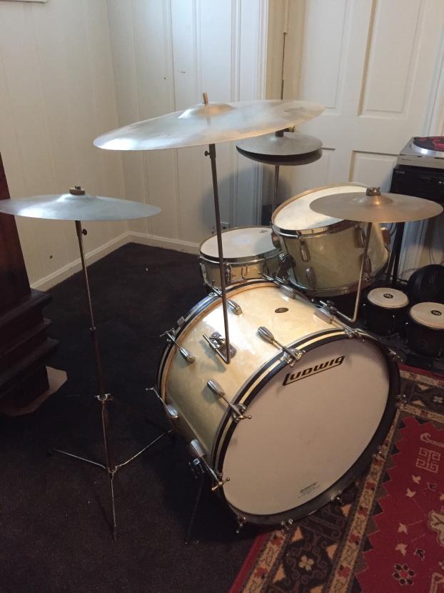 I’ve had this set for about 5 years now and I think it’s time for it to move to its next home. I bought the kit from the son of the original owner, who bought the drums new in 1952. I have all of the hardware, snare stand, cymbal stands, hi-hat stand, as well as the matching Paiste Ludwig Standards that came with the drums (albeit cracked). It’s basically the entire Ensemble 6N setup plus a few other original goodies.