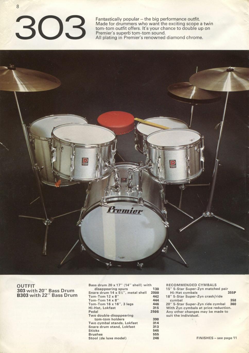 It is only missing a few slotted t-rods and wing nuts. Configured in 20,16,14,14,12 with die-cast hoops and 3-ply African Mahogany with solid Beech re-rings, it has a warm vintage tone. It even came with the original slotted Premier drum key!