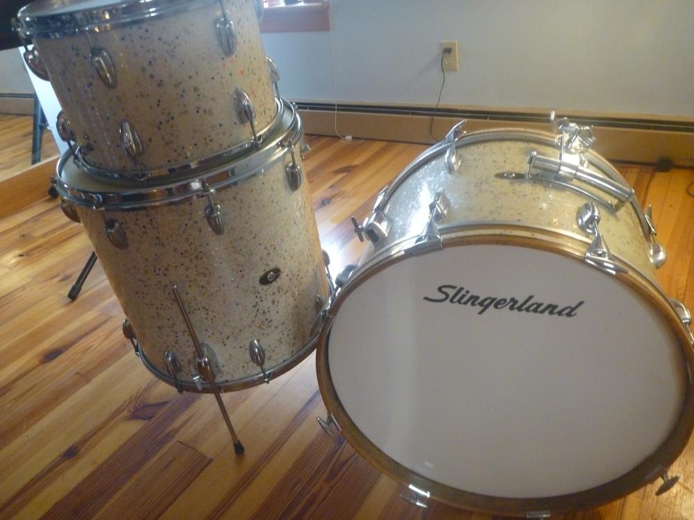13/16/20...Peacock Sparkle...nice original with exception someone added a small Rogers cymbal arm mount on Bass...asking $1795...13/16/20/ Fiesta Pearl...tom rail on bass was moved a few inches and they inlaid the piece that was cutout...asking $1795...pete