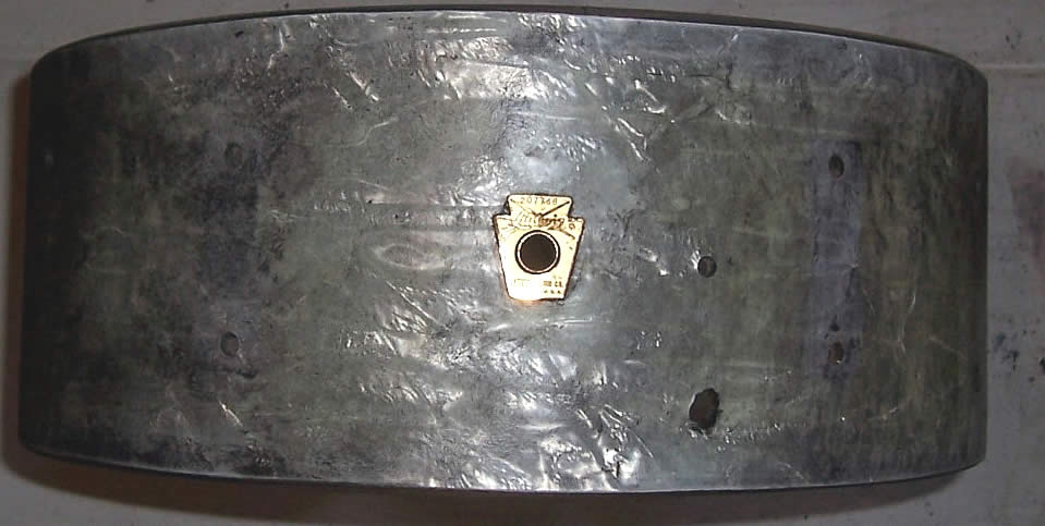 As I was driving home I took a closer look at the drum and was convinced that the "ugly drum" actually had the original Ludwig wrap under the black paint. When I got home I sprayed some paint remover on the shell and, sure enough, under the paint was an original Ludwig Sky Blue Pearl wrap. I've asked the Webmaster to post some pics of the drum prior to my use of the paint remover, as well as after.