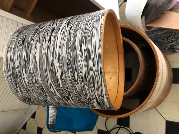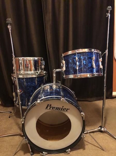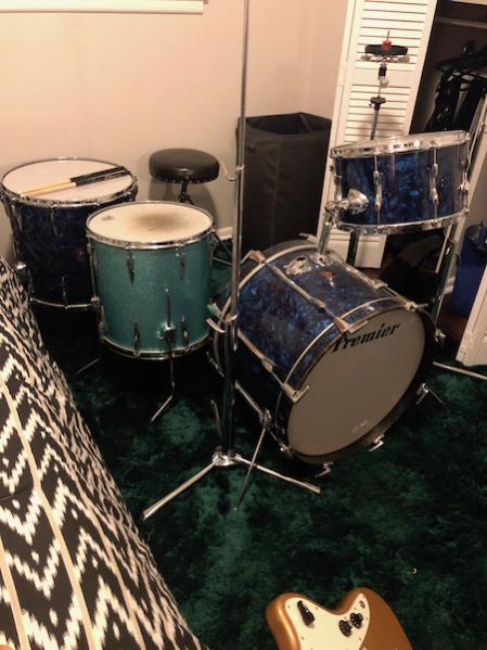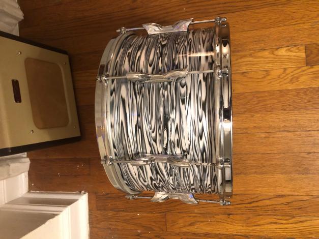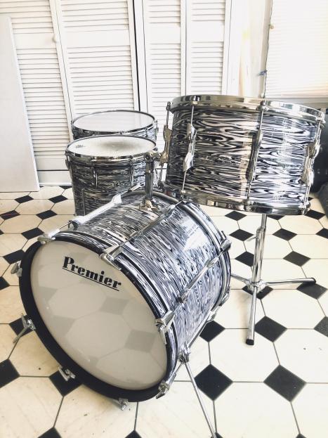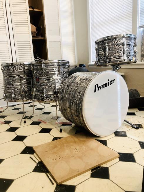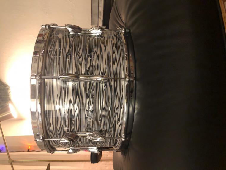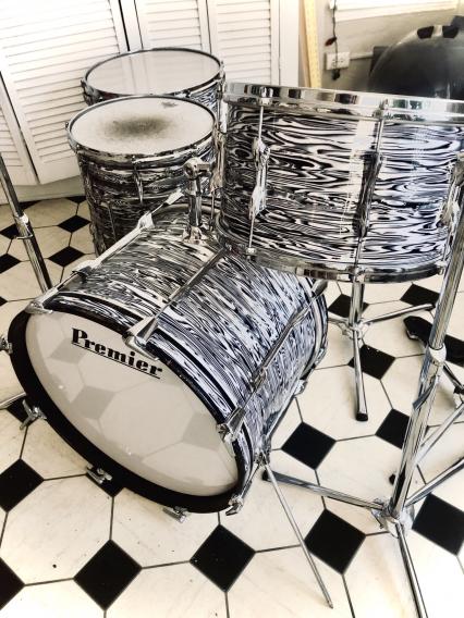 After many years of dreaming about how I could put together a Mitch Mitchell ‘zebra’ oyster drum kit....the day has finally arrived 🙌🏻. First, the main hurdle to accomplishing this kit build is the wrap! His kit was not a cataloged Premier finish, most likely he saw it on a Beverly kit and liked it, I believe I remember reading that somewhere long ago🤔 I have never in my life seen this wrap being sold anywhere...but wait... This hurdle was solved by ST Drums out of Germany. They sold me all their remaining stock of a nearly identical wrap. While I had the main portion of the kit in a blue pearl 14x8”, pre-international 16x15”, and a 20x14”, I needed the near-impossible to find 14x14”. Finally found one! So fast forward to today, all drums have been stripped down to their shells awaiting the new ‘zebra oyster’ wrap coming from Germany any day now 😎 stay tuned for progress pics and updates, to my knowledge, this will be the only Mitch Mitchell replica Premier Kit out there! There will be a few minor details differing my kit from his: