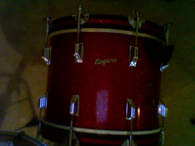 So, I just picked up a 16"x12" red sparkle Rogers Powertone drum. It has reinforcing rings and an imaculate silver painted finish on the inside with the original sticker. It has the original wood hoops with matching red sparkle inlays and beavertail lugs. I bought it with a bass drum riser that it came with (obviously, not Rogers), and it sounds absolutely AMAZING as a kick drum with a LOT of tuning range to work with. This is definitely going to be my bass drum to bring to those "just bring a kick and snare" gigs. I can tune it down for a punchy rock sound, and tune it up into the stratosphere for an Elvin sound.