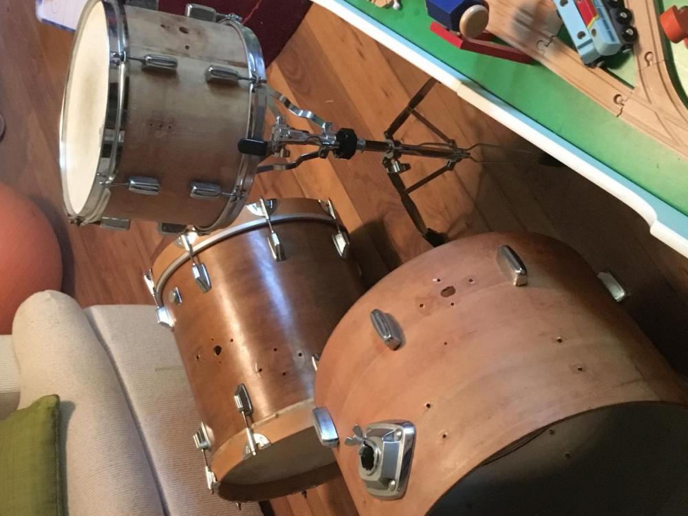 I have covered the two toms with the Jammin Sam blue sparkle wrap. I don't know if it is necessarily the same color as the originals, but I think they look dang good. Once I have the whole shootin' match done, I'll take photos and post them.
